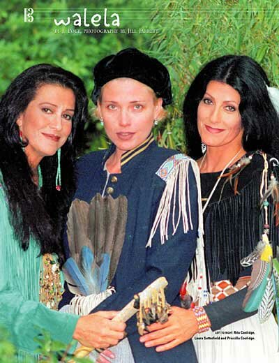 Walela's self-titled debut album (Walela means "hummingbird" in Cherokee), produced by Jim Wilson and released in 1997, mixed Native, pop and New Age forms in its uplifting message. The recording garnered them the Best New Artist award at the 1998 Native American Music Awards (and Laura the best songwriting award for "The Warrior"), but for their next album, Unbearable Love (2000), the trio decided to produce themselves. "Having three strong women in the control booth did create some struggles," Rita admits. "There were days we weren't talking to each other and days when we couldn't let go of each other, but it made the music better. The struggle produces an energy that pushes the music and our lives to new places." Take, for example Unbearable Love, which won the Best Recording by a Duo or a Group award at the 2001 Native American Music Awards. It could be called a Native gospel album, a natural category given the background of the Coolidge family. "Our father is a preacher and spiritual leader who saw no conflict between the traditional ways and the teachings of Jesus Christ," Priscilla says. "He opened the doors of the churches he pastored to African Americans, Indians and whites-this was in the segregated '50s-and he blew people away with the purity of his spirit. He also ministered in many black churches, and we grew up singing black gospel music, as well as the country and R&B on the radio, and listening to the sounds of nature that were all around us, so the music comes naturally." Rita jokes, "There are a lot of Indians in that same place, a lot of Cherokee hillbillies."